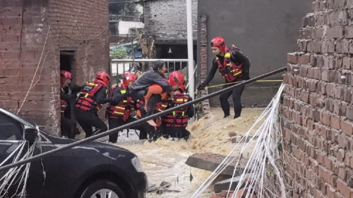 7月8日傍晚,一场突如其来的暴雨席卷重庆中心城区,造成积水、道路中断、人员被困等险情。危急关头,全市应急、公安、消防、市政等部门救援人员闻“汛”而动,冲锋在抢险救灾、疏堵保畅的最前线。从涉水路段到居民楼院,从湍急水流到瓢泼雨幕,逆行者们用最美的身躯筑起一道道守护群众安全的“坚强防线”。